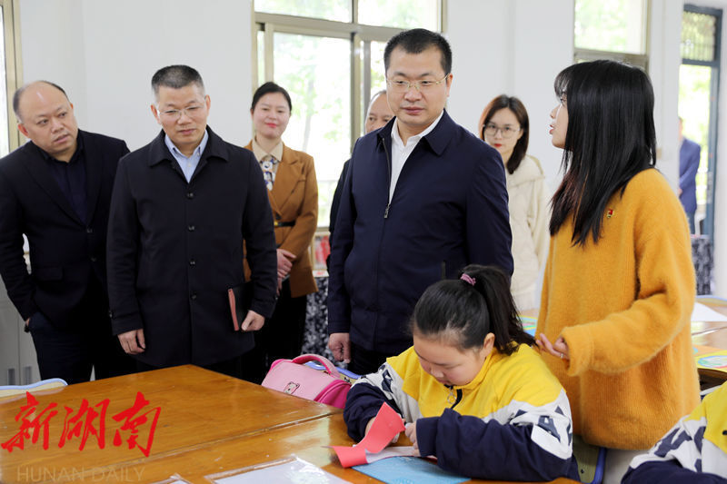曾梦龙一行先后来到新中小学、雨母山中学、立新小学、蒸湘区实验小学,与学校负责人深入交谈,听取了学校基本情况汇报,参观了校容校貌、功能教室、文化长廊、图书角等教学环境,详细了解乡村美育品牌特色、师资配备、教学设施、教育教学质量等情况。他强调,义务教育优质均衡发展是一项重大的民生工程,各相关部门要全面贯彻党的教育方针,高度重视,履职尽责,配齐配强师资力量,进一步提高教师的师德师风、教学水平和管理学生的能力,切实提升教育教学质量,培养德智体美劳全面发展的新时代好少年,为蒸湘区教育事业高质量发展贡献力量。