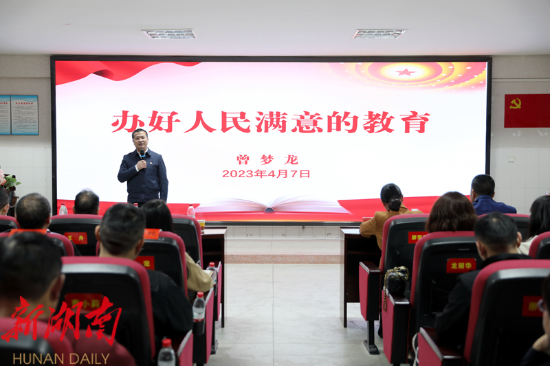 曾梦龙强调,教育是校之大任、师之大任,要切实提高教育教学水平。 理想情怀很重要,要教育孩子们仰望星空,做有远大志向的好学生;方式方法很重要,要教育孩子们注重思考,做有良好习惯的好学生;表扬激励很重要,要教育孩子们积极进取,做有充分自信的好学生。教育是民之大事、区之大事,要奋力建设素质教育强区。 蒸湘的教育走在前列,我们要充满自信;蒸湘的教育短板不少,我们要加快补齐;蒸湘的教育任重道远,我们要踔厉奋发。要加强党对教育工作的全面领导,大力加强学位建设,切实建强师资队伍,不断提高办学质量,持续加大经费投入,营造尊师重教氛围,为办好人民满意的教育而不懈努力。
