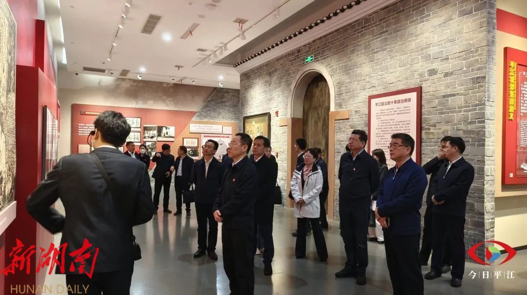 在平江起义纪念馆,何振国一行缅怀革命先烈,表达对老一辈无产阶级革命家的敬意和怀念,并详细参观了纪念馆的每一处展览,对平江起义的全过程进行了细致的了解。