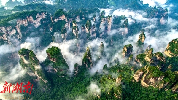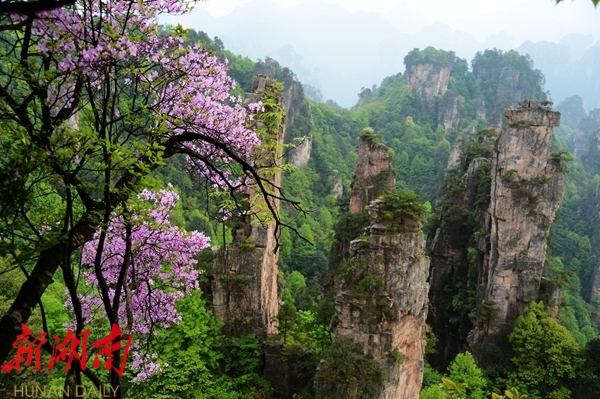 湖南日报·新湖南客户端4月10日讯(记者 唐小花)四月,风渐暖、花尽开,一年中最美的季节。四月的武陵源,早已被“色彩”装点,抬头仰望是清新的蓝,环顾四周是怡人的绿,游人乐在多姿多彩的山水之间,共享人间最美四月天。