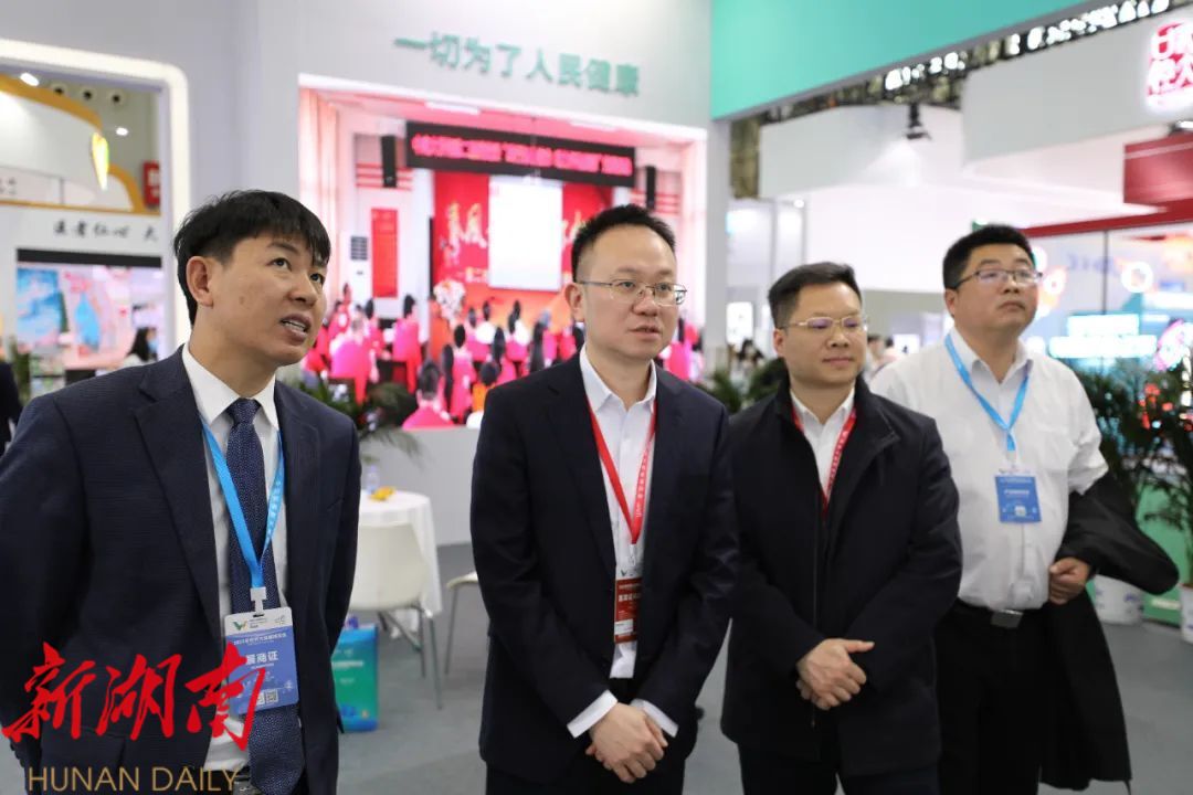 4月7日至10日,2023年世界大健康博览会在武汉举行,津市设置生物医药产业展示专区。津市市委副书记、市长彭子晟现场指导布展工作。