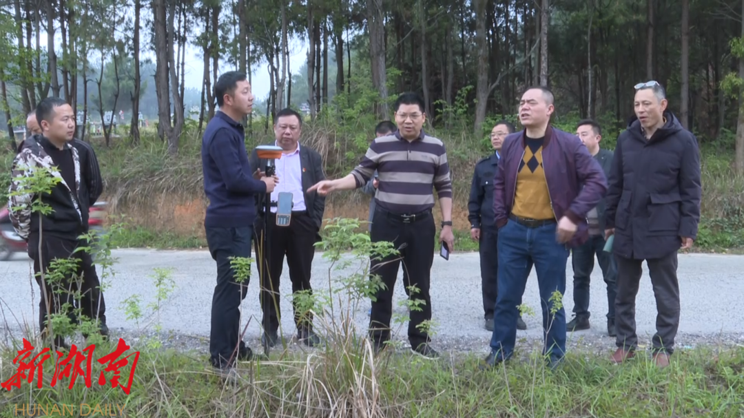 新洞口客户端4月11号讯(记者 向五君) 4月11日,县人大常委会副主任、县国省干线指挥部常务副指挥长胡小革率县交通局、县公路建设养护中心、县自然资源局、黄桥镇、高沙镇等部门和单位相关负责人现场调度黄高公路项目建设工作,加快推进黄高公路项目建设。