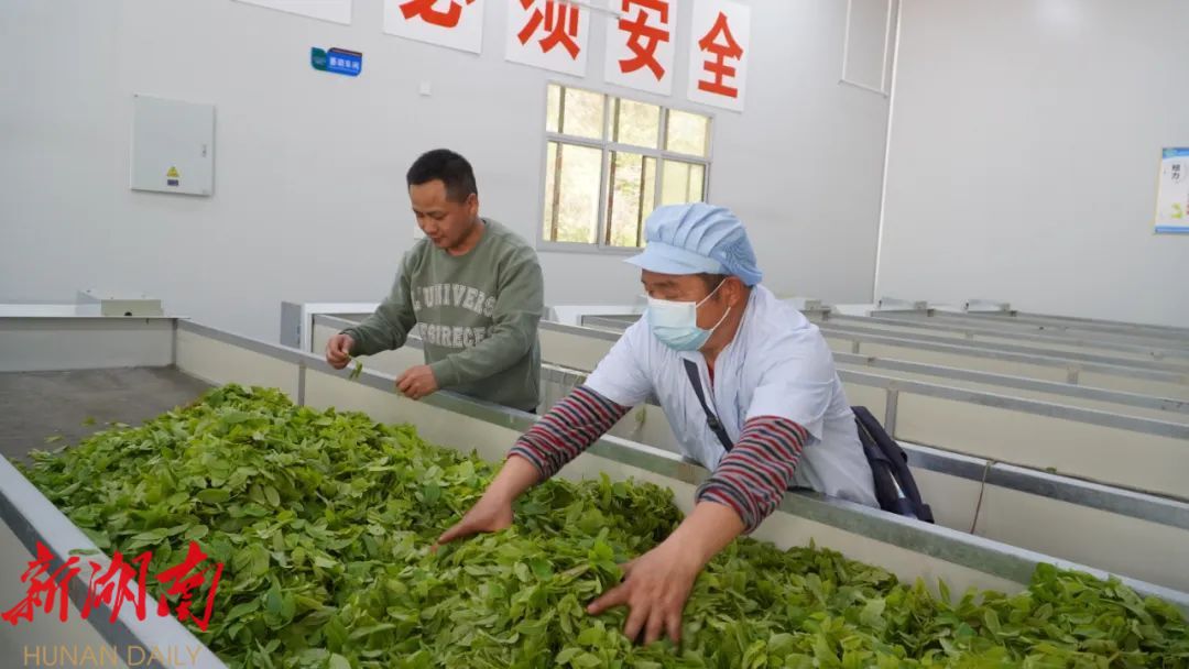 “第一批青钱柳的品质最好、最嫩,我们正在抓紧制作首批新茶。”张家界福安家云尖生态农业发展有限公司副总经理田婷告诉记者,现在正是采摘青钱柳的黄金时期,叶嫩、叶香、品质好,每斤收购价格8到12元不等,预计今年收购的鲜叶比去年多。收购来的鲜叶经过摊晾、杀青、揉捻、烘干等多道工序,摇身变成了村里的致富“黄金叶”。
