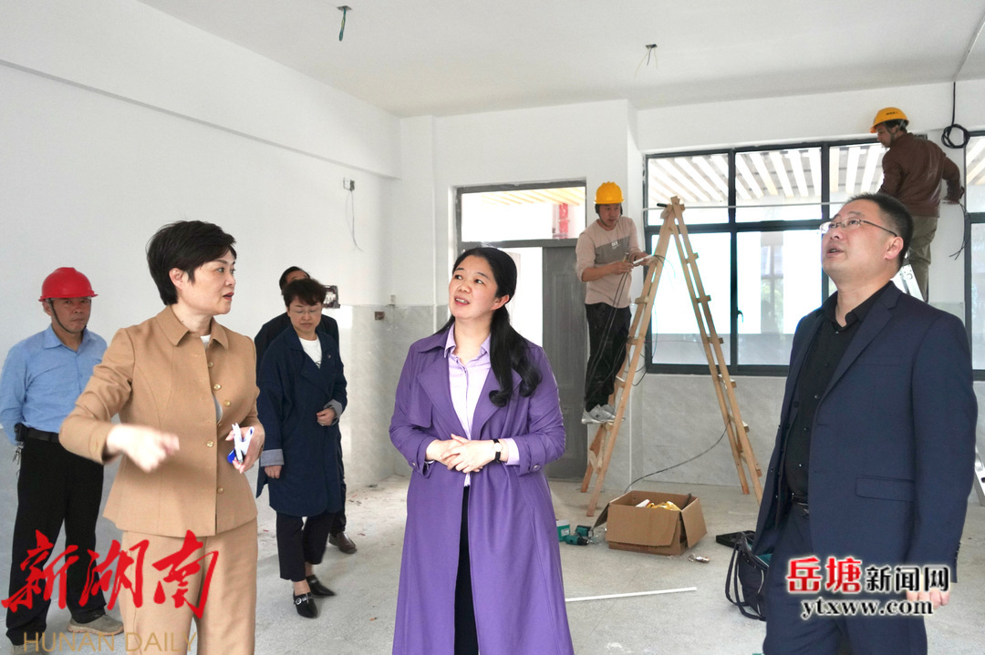 岳塘新闻网 4 月 11 日讯 (记者 黄雯杏)4月11日,岳塘区委副书记、区长周赏玲前往滴水湖学校二期项目,现场调度项目建设扫尾工作。