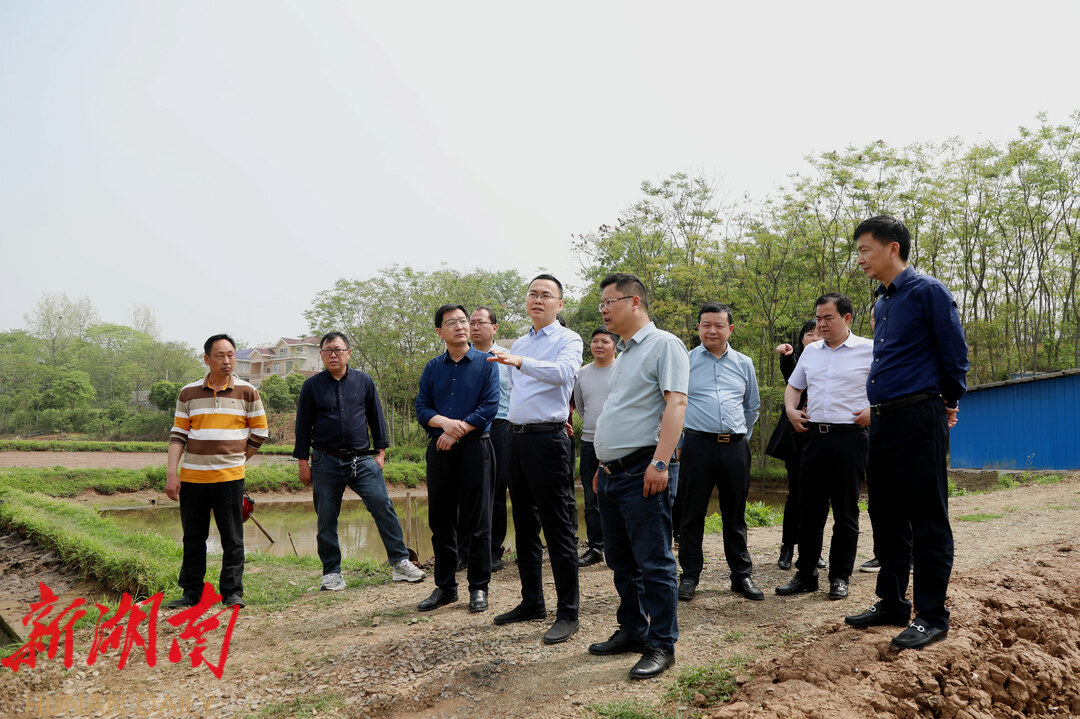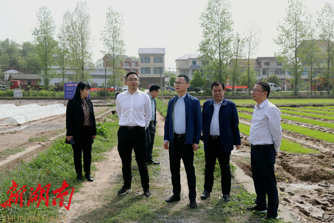 庞波在陬市镇小马山村万亩示范片察看大田翻耕情况