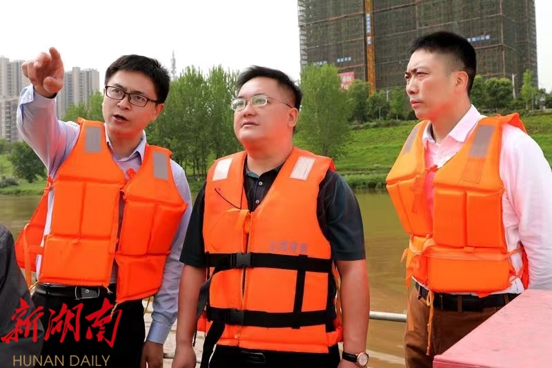 4月15日上午,区委副书记、区长李健率队开展巡河,实地查看蒸水河蒸湘段两岸排渍口、沿岸整治、沿江绿化、生态建设等情况。
