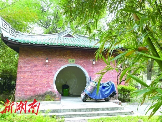 岳麓山下,湖南大学大礼堂旁边,有一座似“宫殿”的小屋,不仔细看很难发现它是一座公共厕所。整座厕所采用和大礼堂一样的红砖,顶部设计了四个用于通风的老虎窗,老虎窗也采用了古建的屋顶结构,四周翘起的飞檐与绿色的琉璃瓦让它成为岳麓山下独特的存在。