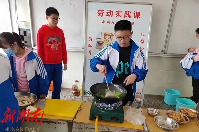 零陵区“双减”政策落地以来,各中小学落实“立德树人”根本任务,持续推进“五育并举”,不断创新劳动育人形式,把劳育课纳入课程表,丰富新时代劳动技能课的内涵,不断研发劳动实践教育课程,形成了劳动教育特色成果,发挥了以劳树德、以劳增智、以劳强体、以劳育美,综合育人作用。零陵区教育局相关负责人表示。