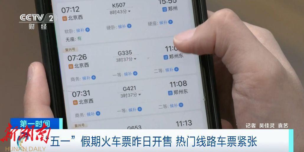 北京西站售票车间副主任 尹世斌:目前售票情况来看,4月29日去往西安、太原、郑州、长沙、武汉方向的高铁列车车票比较紧张,以上方向普速列车还有少量硬座。