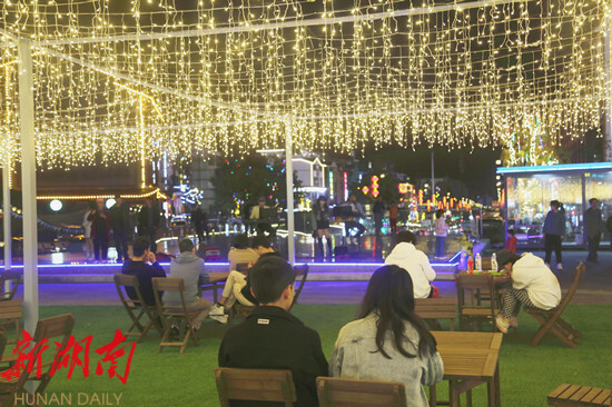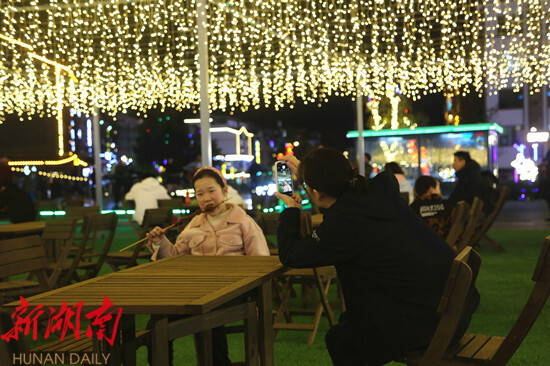 研学游火热的同时,武陵源的“夜”同样流光溢彩。夜幕降临,位于武陵源标志门·九院十街啤酒音乐广场热闹非凡。小吃摊点依次排开,各种吆喝声、音乐声不绝于耳,不少游客拿出手机拍照留念,点燃了城市的烟火气……