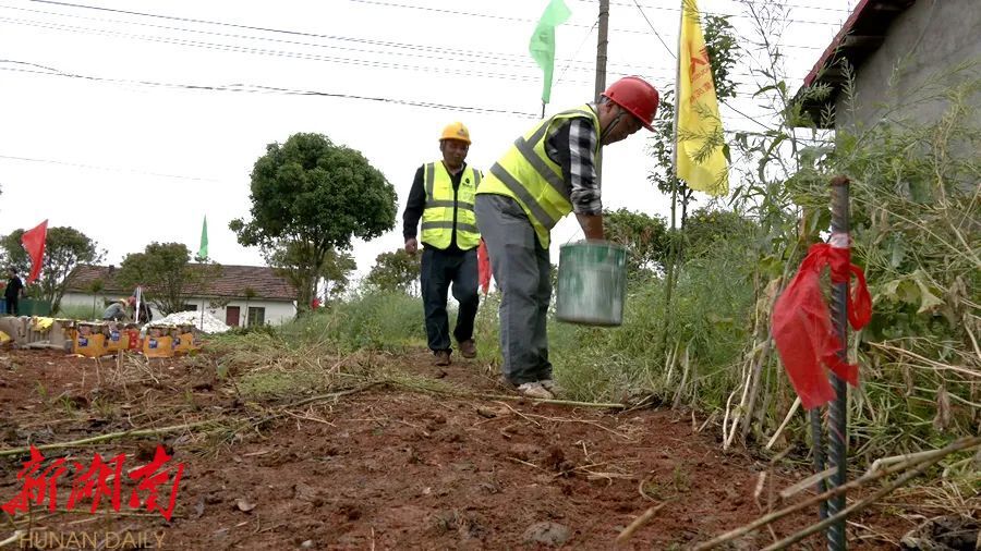 据现场施工人员介绍,目前正在进行放线,根据施工图纸确定房屋主体结构的临时参照点,并标注方便后续施工,放线完成后挖掘地基、建造墙体等,整个房屋属于钢结构装配式建筑,建成预计需要3个月。