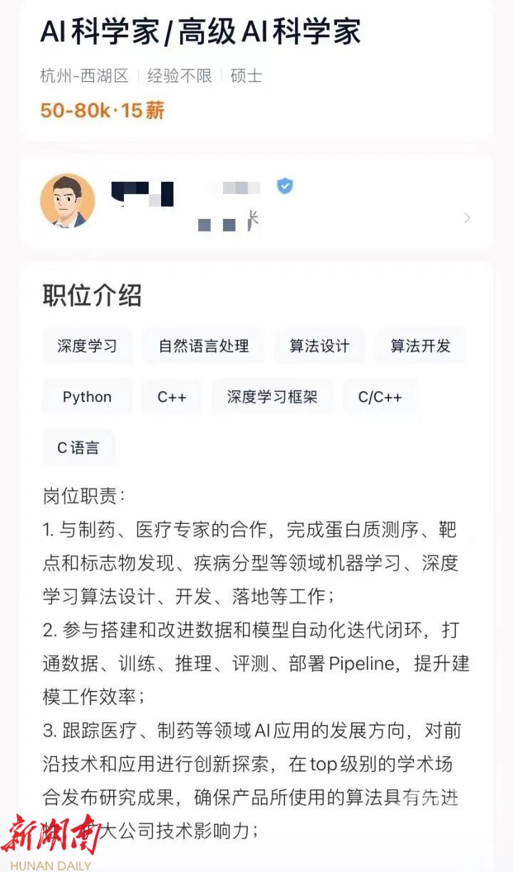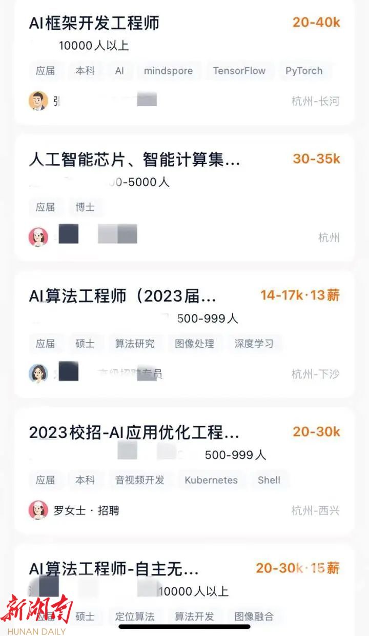 昨天,橙柿互动记者查询了一些招聘网站,发现在杭州,人工智能专业的毕业生大部分的月薪在2万到3万左右, 比如AI框架开发工程师月薪在2到4万,AI研发工程师在2到3万,AI算法工程师月薪在1到3万不等。总体来看,AI方向的毕业生能够拿到的年薪大部分在二三十万左右,能够拿到四五十万水平的大多要求硕博学历,且需要大量的研究经验。
