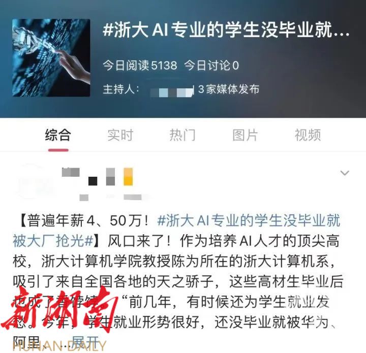 毕业生普遍起薪四五十万以上,学生没毕业就被大厂抢光…… 最近,浙大人工智能专业毕业生就业形势很好成为网友关注焦点。