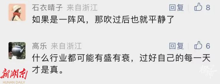 网友“高乐”说:“什么行业都可能有盛有衰,过好自己的每一天才是真。”