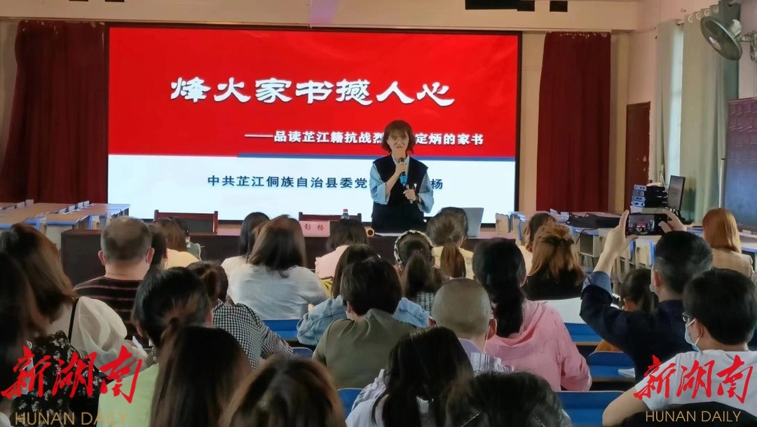 湖南日报·新湖南客户端5月12日讯(通讯员 杨登海 陈斌斌)听红色故事,悟百年党史。近日,一场别开生面的红色故事党课----《烽火家书撼人心》在芷江东门口小学多媒体教室举行。县委党校副校长彭杨用饱含深情、抑扬顿挫的声音讲述了芷江籍抗战烈士汪定炳感人至深的30封革命家书故事和闪耀荣光的革命历程,让东门口小学全体党员、教师接受红色教育,传承红色精神,赓续红色血脉,时刻不忘教育初心,牢记育人使命。