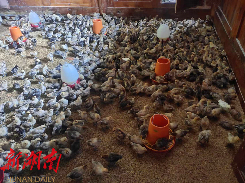 为带动脱贫户共同增收致富,增加养殖规模,满足供货量,在11月10日申办了“芷江小毛种养专业合作社”,吸纳了脱贫户、监测户、易地安置户6户共谋发展,实行统一管理、分散种养、集中销售的新模式,每隔1个月错峰上市,每年可出售跑山鸡2万多只,纯收入60万元。驻村工作队上门指导,加入易繁殖的面包虫,增加高蛋白、氨基酸,并申报本土特色的“虫草鸡”品牌。