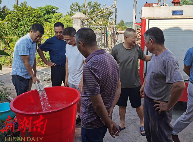 为让一些行动不便的老人也能用上水,乡村两级干部步行将水送到他们家中。接到水的村民说:“真的很感谢政府,感谢你们在那么热的天气还来给我们送水。”