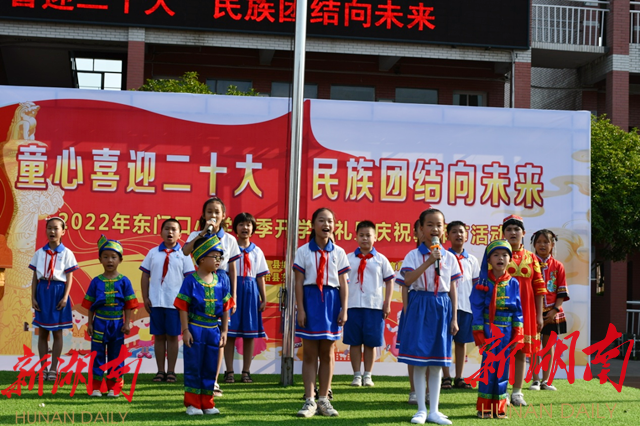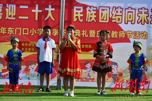 湖南日报·新湖南客户端9月10日讯(通讯员 杨登海 陈斌斌)沐浴九月的阳光,收获金秋的希望。9月9日上午,芷江侗族自治县东门口小学隆重举行了“童心喜迎二十大 民族团结向未来”为主题的2022年秋季学期开学典礼暨教师节表彰活动,该县统战部、县应急管理局、县教育局相关负责人及部分退休老教师受邀参加。