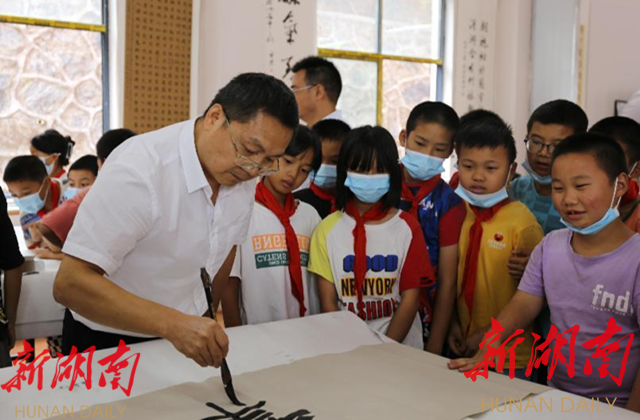活动还为楠木坪镇中心小学的孩子们捐赠了书籍和书画作品。