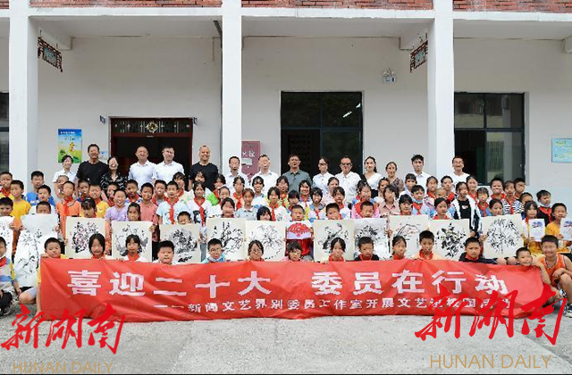 湖南日报·新湖南客户端9月23日讯(通讯员 李京格)9月21日,芷江县政协副主席向春明与新闻文艺界别委员工作室全体成员、芷江县知名文艺家们一同前往楠木坪镇中心小学开展“喜迎二十大 文艺进校园”活动。