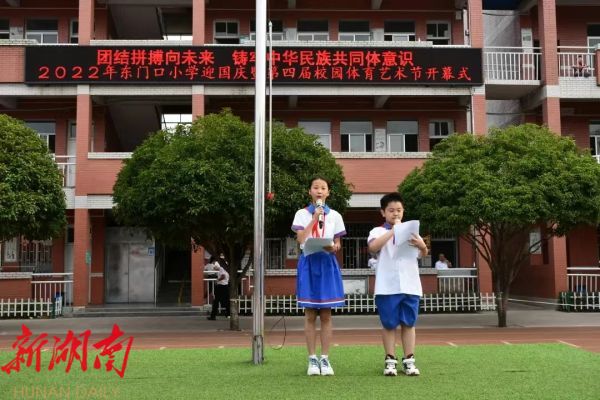 湖南日报·新湖南客户端9月30日讯(通讯员 谭亚平 杨登海)金秋九月,丹桂飘香,各族人民心连心,同心共筑中国梦。9月28日,芷江东门口小学在学校操场隆重集会,开展以“团结拼搏向未来 铸牢中华民族共同体意识”为主题的喜迎二十大暨民族团结进步创建宣传月活动启动仪式,全体教师及三至六年级学生共1500余人参加。