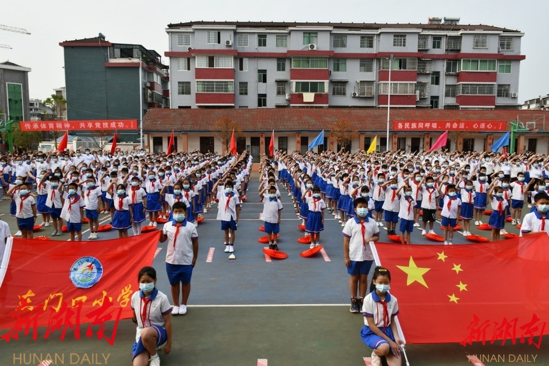 湖南日报·新湖南客户端9月30日讯(通讯员 谭亚平 杨登海)金色九月,丹桂飘香,各族人民心连心,同心共筑中国梦。9月28日,东门口小学在学校操场隆重集会,开展以“团结拼搏向未来 铸牢中华民族共同体意识”为主题的喜迎二十大暨民族团结进步创建宣传月活动启动仪式,全体教师及三至六年级学生共1500余人参加。