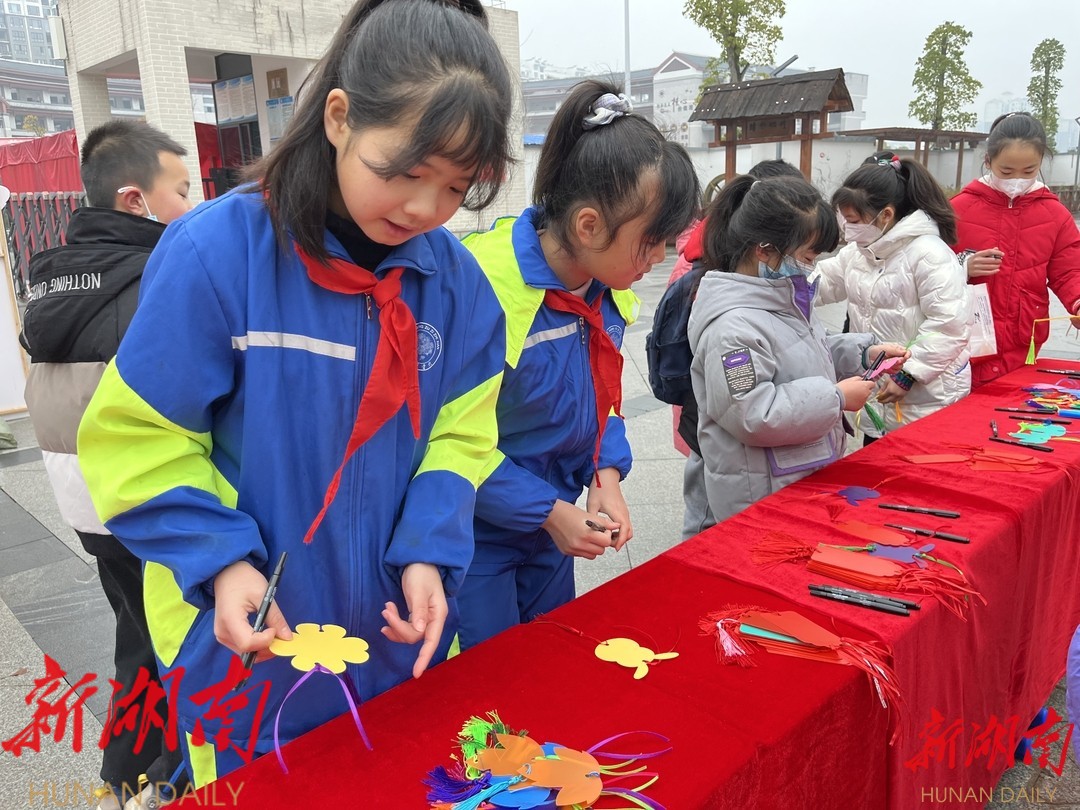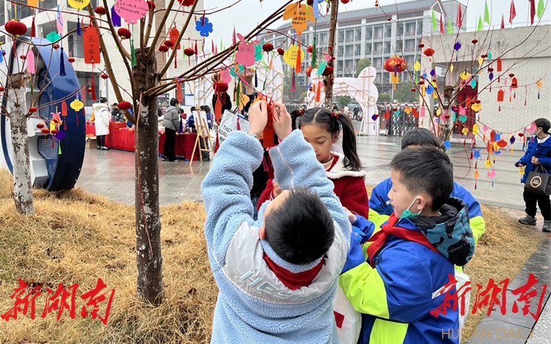 湖南日报·新湖南客户端2月7日讯(通讯员 廖星星 万婧 江贵)2023年2月7日上午,在绵绵春雨中,芷江芙蓉学校精心筹备迎来了春季开学第一天。学校在校园内为孩子们准备了“花式开学礼”,孩子们一个个穿过“健康门”和“快乐门”,来到好运桌前,摸摸桔子“大吉大利”,摸摸火龙果“红红火火”,摸摸苹果“平平安安”,亲手制作“心愿书签”,老师们逐个给孩子们送祝福、送礼物,让孩子们领取糖果,寓意身体棒棒、学习旺旺!校园里焕然一新,氛围满满,随处可见在树枝上挂满红红的小灯笼和孩子们的“心愿书签”,一派喜气洋洋的景象。
