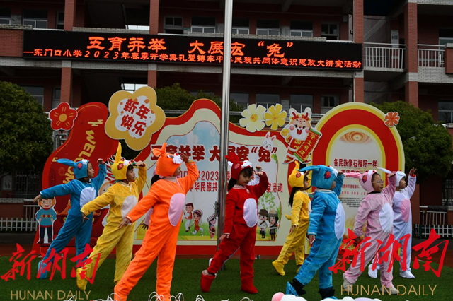 在开学典礼上,东门口小学的孩子们在德智体美劳各个方面竞展风流、尽显风采。一二年级的孩子们是健康向上的“活力兔”。带来了精彩的舞蹈表演,生命不息,运动不止。加强体育锻炼,不仅利于身体健康,内心也会充满阳光。五年级是吃苦耐劳的“勤劳兔”,他们通过寒假实践活动学会了一道道色香味俱全的菜肴,展示给全校的同学们,告诉大家美好的东西都是靠劳动来创造的,在自己动手实践的过程中能感受劳动的乐趣。三年级是心灵手巧的“巧手兔”,给大家带来了一幅幅精美的剪纸作品,用巧手为生活增添了新趣味。四年级善思动脑的“智慧兔”为我们带来了一场神奇的科学实验表演,让孩子们在轻松愉悦的氛围也学到了科学知识。我们六年级激情满怀,大踏步走在祖国的逐梦路上的“励志兔”,用集体朗诵一齐为这个奋进的时代加油。