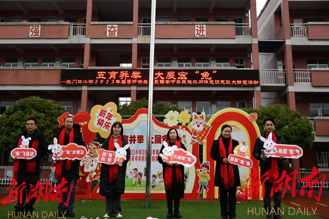 最后,学校领导班子们为同学们送上兔年祝福语,希望同学们像动如脱兔般奋跃而上、飞速奔跑,不忘初心,突飞猛进,大展宏“兔”,努力创造更加灿烂辉煌的明天。