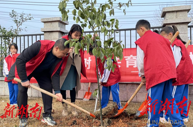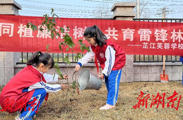 湖南日报·新湖南客户端3月10日讯(通讯员 江贵 万婧)阳春三月,草木秀润。为牢固树立绿水青山就是金山银山的绿色发展理念,进一步弘扬和传承雷锋精神,营造向上、向善的廉洁意识,提升党员、少先队员社会责任感和保护生态环境的意识,3月10日上午,芷江芙蓉学校党支部携党员志愿者、少先队大队部开展“同植廉洁树 共育雷锋林”植树活动。