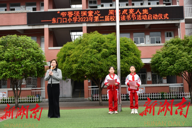 伴随着悠扬的国歌和冉冉升起的国旗,东门口小学第二届校园读书节正式启动。启动仪式上,东门口小学校长谭亚平致辞,她向师生们提出殷切希望,勉励大家以书为友、爱上阅读,感受文字之美,享受读书之乐。要养成热爱书籍,博览群书的好习惯,让书香溢满校园。