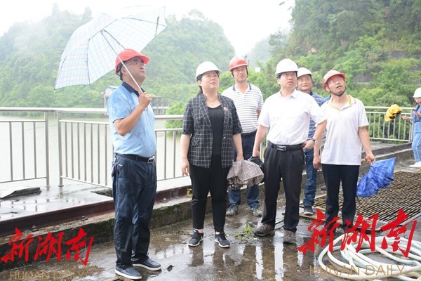 新湖南客户端6月15日讯(通讯员 彭晓东) 6月12日上午,县委副书记、县长时荣芬率县政府办、县水利局、县防汛办、县自然资源局等相关单位负责人,深入洗洛镇和洗车河镇督导水库防汛和地质灾害隐患点防灾工作。副县长储军参加调研。