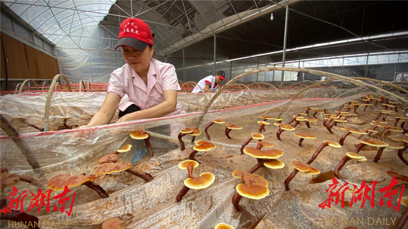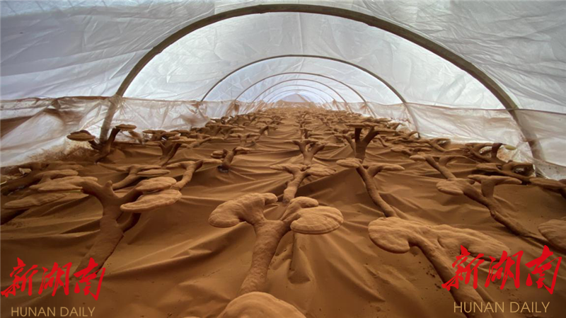 红石村自然气候和生态环境适合灵芝等菌类生长。经过多次调研和学习考察后,岳麓区帮扶工作队与村支两委商量决定,在村里引进木灵芝种植,发展色种植产业。