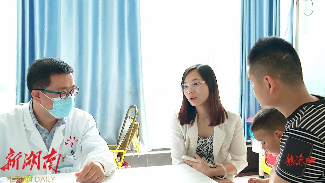 在湘南医院,市民陈素珍正在带儿子拔牙,并成功使用自己的职工医保进行了费用支付,成为临武县首个成功享受职工家庭门诊共济的市民。