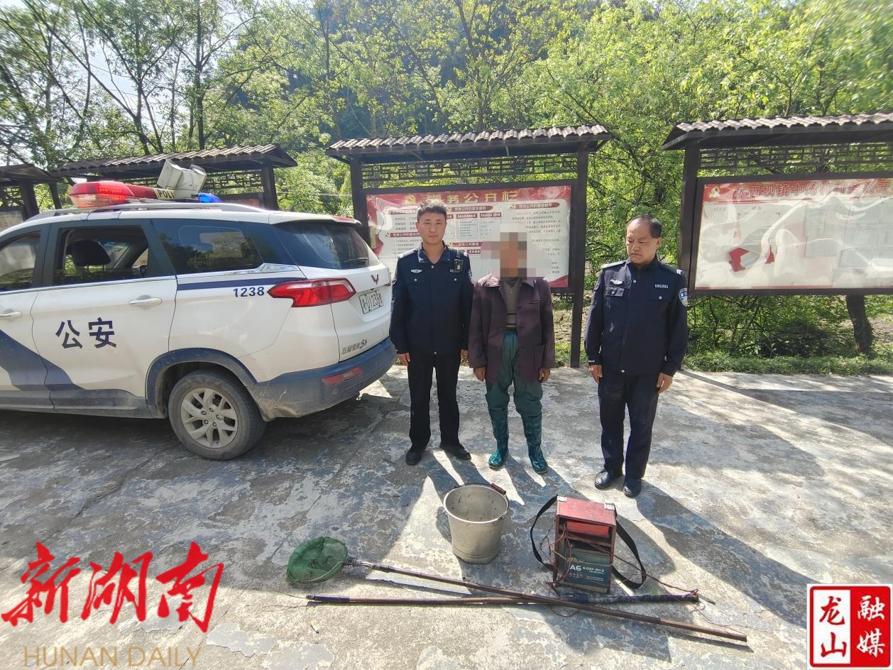 龙山县融媒体中心4月27日讯(通讯员 曾姣姣 万利)4月25日,水田坝镇河长办在日常巡查中发现,缺台河中湾村段有人正在河中非法电鱼,便上前予以制止,并立即通知镇派出所、综合执法大队。执法人员现场抓获非法电鱼人员1名,收缴暂扣电鱼工具1副。 经核实,非法电鱼人员为中湾村村民,闲来无事便打起了下河电鱼的主意。