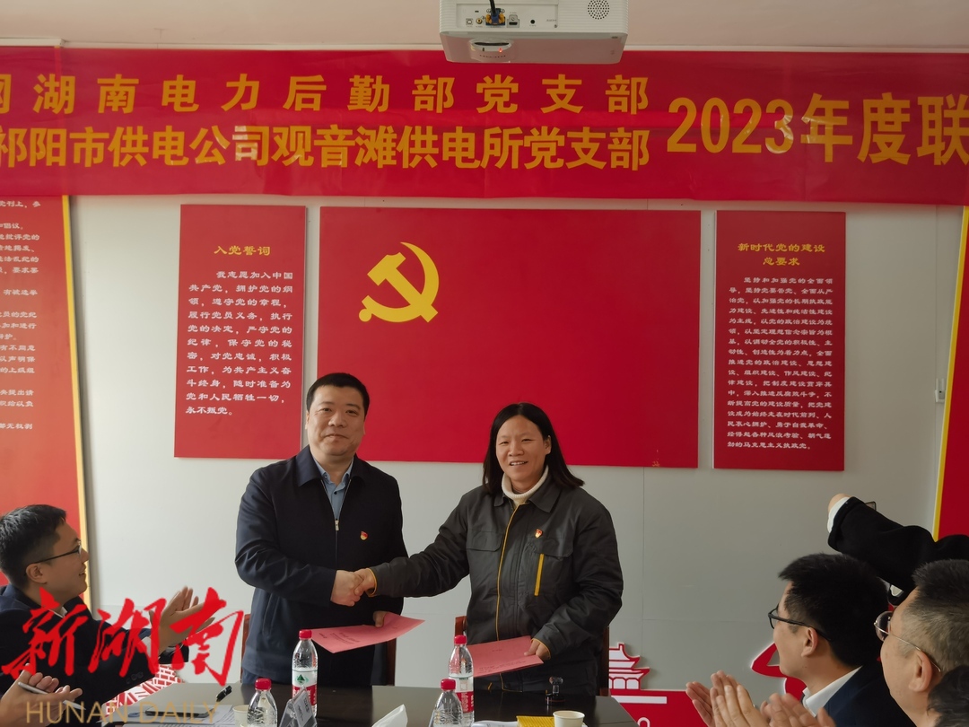 国网湖南省电力公司后勤部与国网祁阳市供电公司观音滩供电所党支部开展“联学联创”活动,以党的二十大精神为抓手,弘扬“松风精神”, 传递政策要求、帮助解决难题、提升业绩指标, 促进 供电所 “ 党建 + ” 工作上台阶、上水平 , 共创党建工作新气象, 重点开展相互学、红色行、振乡村行动。
