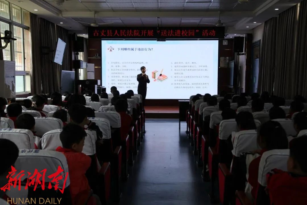 新湖南客户端4月27日讯(通讯员 张晓慧)近日,湘西土家族苗族自治州古丈县人民法院组织干警开展送法进企业、进校园活动,以法治课堂、以案释法等方式,为中国农业银行股份有限公司古丈支行和古丈县第一完全小学师生们讲授了一堂堂生动的法治教育课。