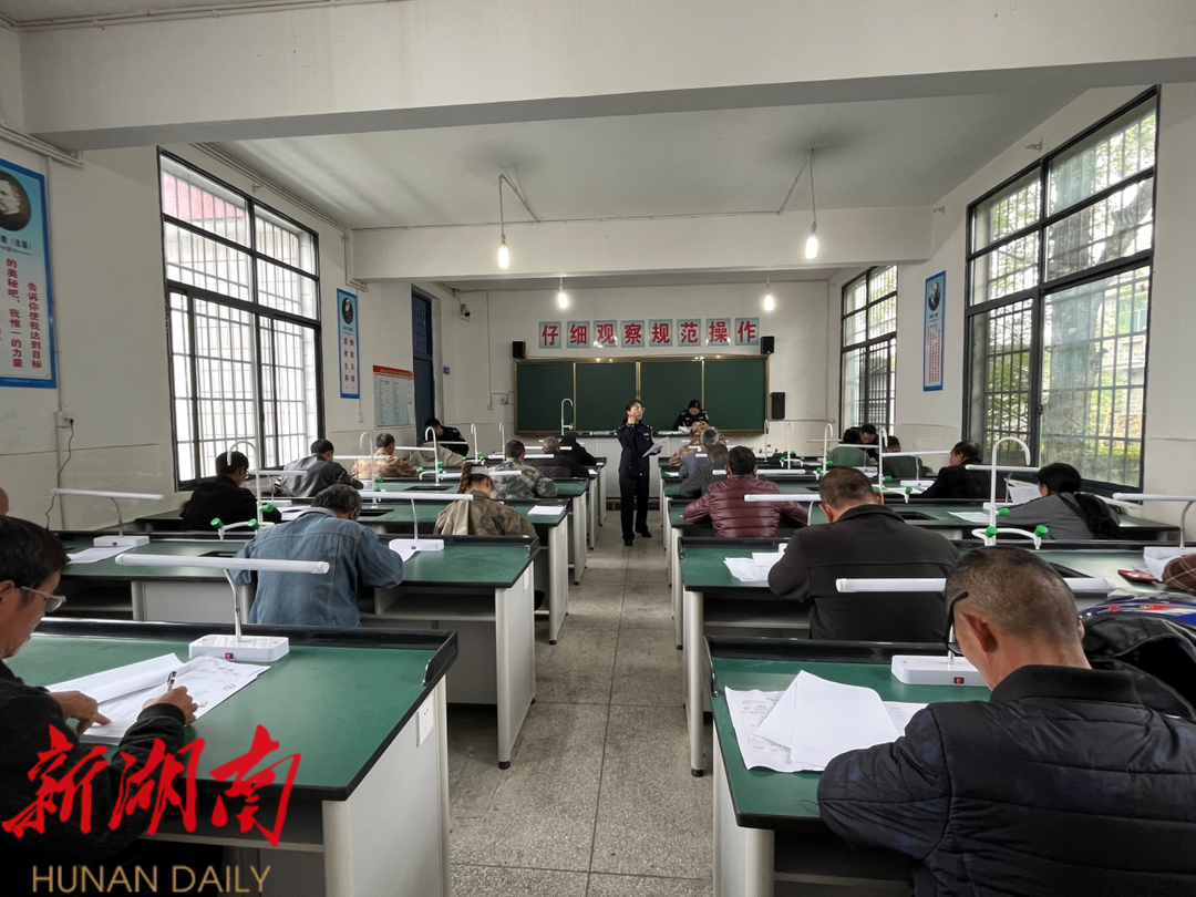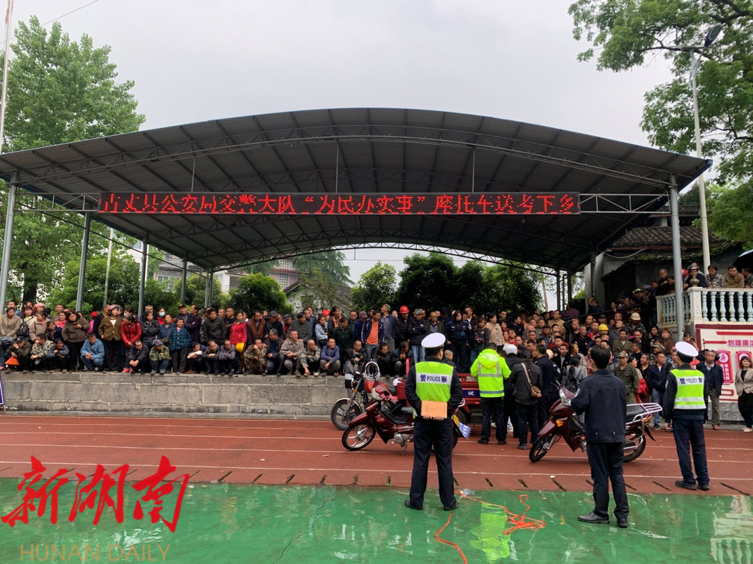 新湖南客户端4月28日讯(实习记者 李韬涛 通讯员 向圣芝)为抓好“道路交通安全整治月”专项行动,进一步规范农村摩托车驾驶人员管理,预防和减少道路交通事故,解决广大农村群众考证难问题,让群众在家门口享受零距离暖心服务。4月28日,湘西土家族苗族自治州古丈县断龙山镇联合县公安局交警大队、镇派出所开展“为民办实事”摩托车、三轮车送考下乡活动。