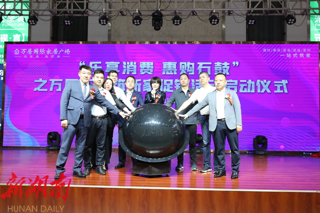 新石鼓客户端5月1日讯(通讯员 唐成) 5月1日上午,“乐享消费、惠购石鼓”之万居五一筑新家促销活动启动仪式举行。石鼓区委副书记、区长谢海蓉宣布活动正式启动。区委副书记李一帆,衡阳市家居行业商会会长、万居国际家居广场总经理曹刚修致辞。衡阳市安徽商会会长燕飞,湖南银行衡阳分行副行长向晖讲话。