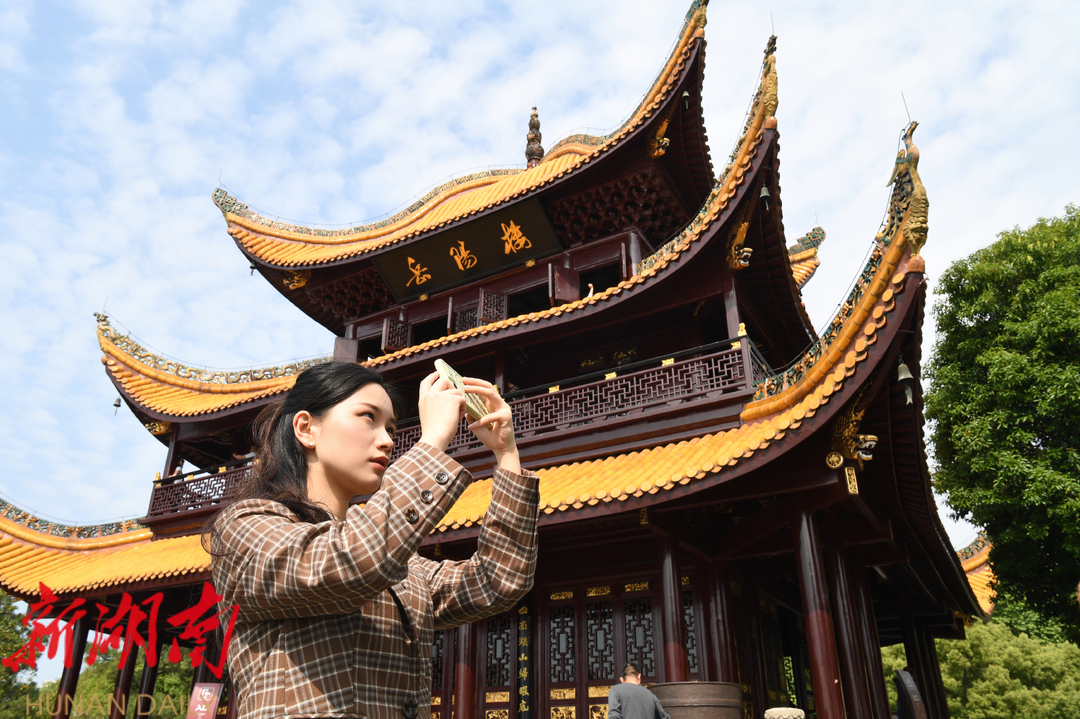 4月27日,记者在岳阳楼下远眺拍照。 湖南日报全媒体记者 田超 摄