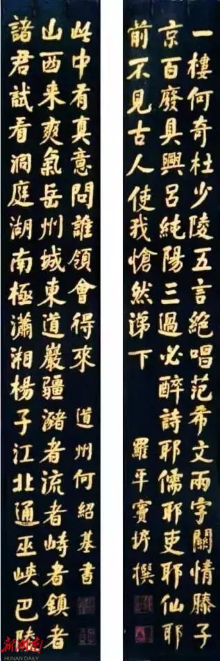 楼内一层,范文公的《岳阳楼记》雕屏两侧,单悬了一副清人窦垿(xù)所作,书法家何绍基所书的102字长联。
