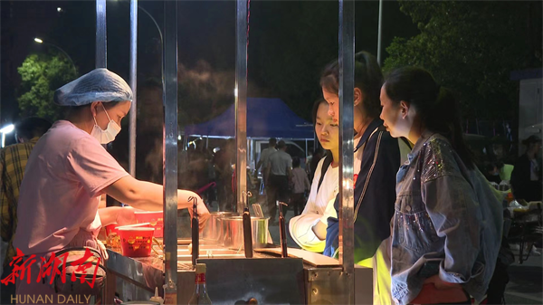 同一时间段,位于浯溪一中祁山路的夜间集市也热闹开市,几十个小吃摊位一字排开,各具特色的手作、热气腾腾的美食、美妙动听的音乐,吸引着众多市民和游客。