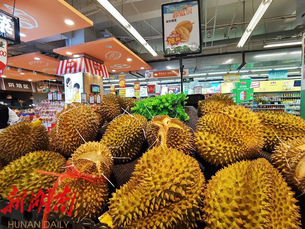 △水果市场榴莲热销 零售价降至20元/斤左右