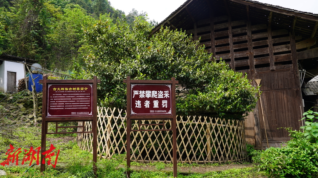步入旧庄,四周放眼望去全是古茶园,主要分布在树林间和杂草丛间,生于斯地的瞿绍波,在古树野生茶合作社发展时,专门请了十多位劳工,花费两个多月的时间进行修整,还原了古茶园的样貌。穿梭林木之间,呼吸自然原始的清新空气,触摸大山深处古茶树的枝叶脉络,这是前人为我们研究、保护和传承古丈绿茶本源的宝贵财富。