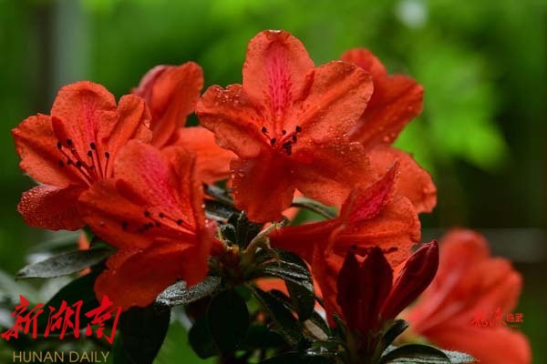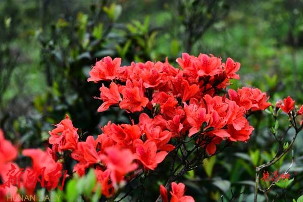 山青水碧铮铮铁骨,不染纤尘烈烈鹃花,此山一簇像火苗,彼岸一团似火球,迎风而立争妍竞芳 ,叠锦堆秀撼人心魄,形散神不散,以情入诗。