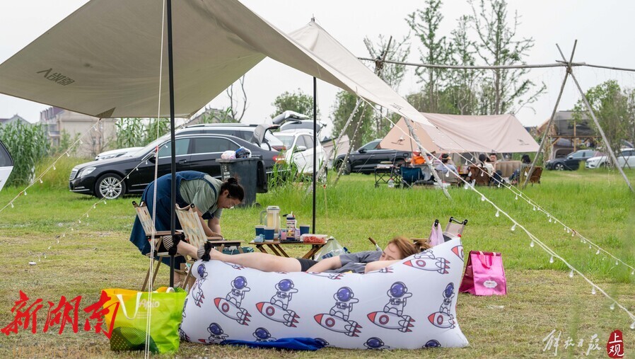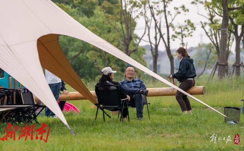 解放日报·上观新闻记者留意到,《指引》发布后,公众对一些露营点天幕占地大、风绳太长易绊倒孩子造成的安全隐患问题吐槽最多。还有游客提出,大型天幕一拉,公园里的公共空间就成了个别游客的“私人领地”,对这种行为应有所限制。对游客提出的问题,记者上周末分别前往世纪公园和浦东航头丰桥村一处经营式露营地一探究竟。