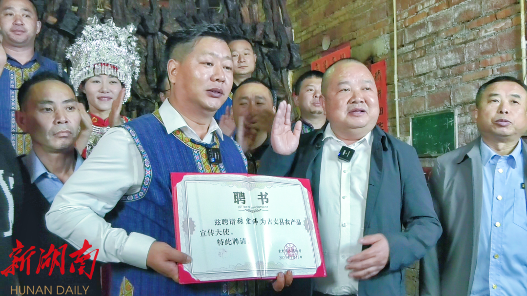 古丈县人大常委会副主任向青山为张宏伟颁发“古丈助农宣传大使”证书