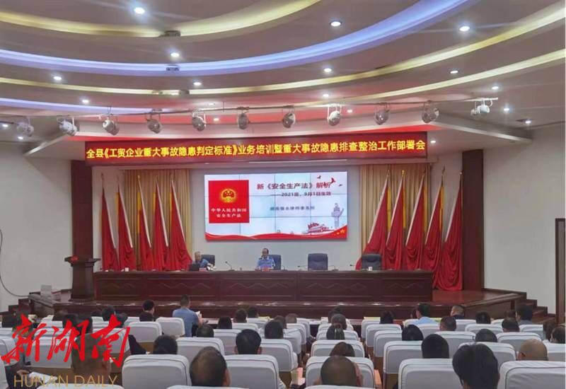 湖南日报·新湖南客户端5月18日讯(通讯员 杨大江) 近日,岳阳县召开《工贸企业重大事故隐患判定标准》业务培训暨重大事故隐患排查整治工作部署会,各乡镇(办事处)、园区安环科负责人及全县工贸企业主要负责人参加。