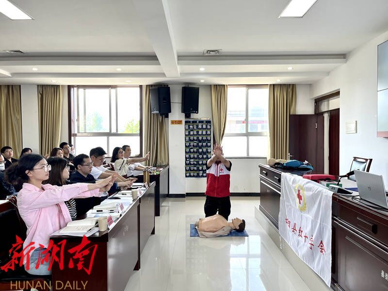 湖南日报·新湖南客户端5月18日讯(通讯员 张维 李南莎) 为进一步普及应急救护知识,提升青年干部的应急救护能力。5月18日上午,县红十字会应急救护培训走进县委党校第33期中青年干部培训班。本次培训班特邀湖南省公众急救知识技能普及导师、湖南省红十字会救护培训师资、湖南省卫生应急与紧急医学救援组成员、县人民医院外科副主任护师袁志梅授课,共计70余名学员参加培训。