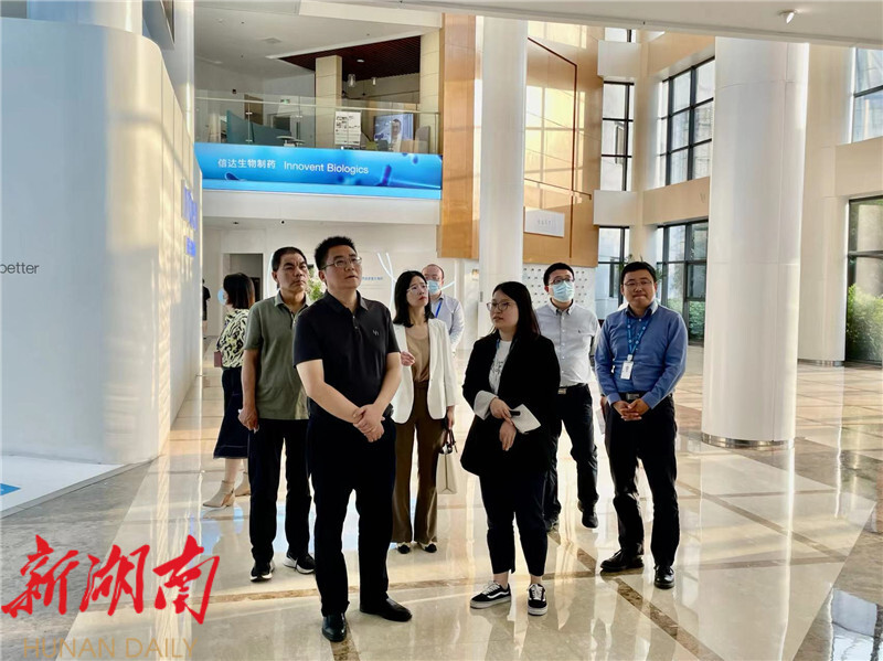 苏州生物医药产业园位于苏州工业园区,是苏州工业园区培育生物产业发展的创新基地,是苏州工业园区倾力打造的创新科技载体,也是园区孵化和培育生物医药产业的主阵地。在听取苏州市工业园区科创委副主任、姑苏实验室副主任杨小波的情况介绍后,肖湘晖 表示,医药及医疗器械产业链是岳阳县三大产业链之一,苏州生物医药产业园的发展理念、规划设计和“一张蓝图绘到底”的定力,值得学习,深受启发,希望苏州生物医药产业园能“牵线搭桥”,推荐有意在中部地区投资布局的优质企业来岳阳县投资兴业,加快推进岳阳县生物医药产业发展。